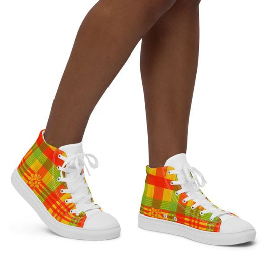 Baskets Hautes Madras en Toile pour Femme